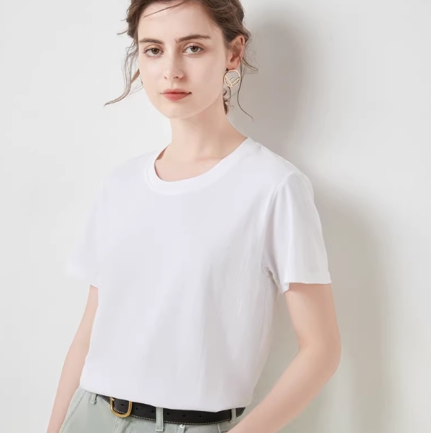 春夏新款新疆棉上衣白色短袖T恤女装圆领纯色半袖内搭宽松韩版