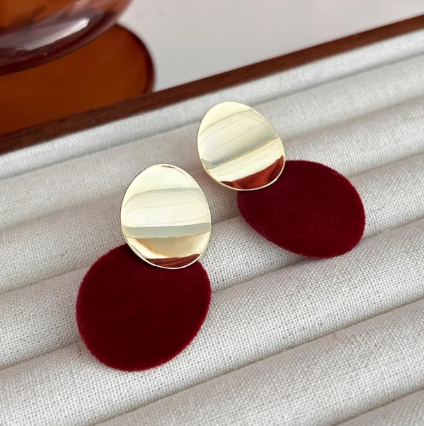 安可拉红不对称圆片耳环纯银小众独特丝绒耳钉2025新爆款高级耳饰