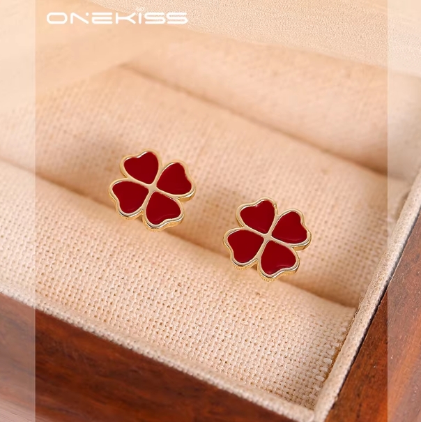 S999纯银新年红色三叶草耳钉小众设计高级感耳环2025新款爆款耳饰