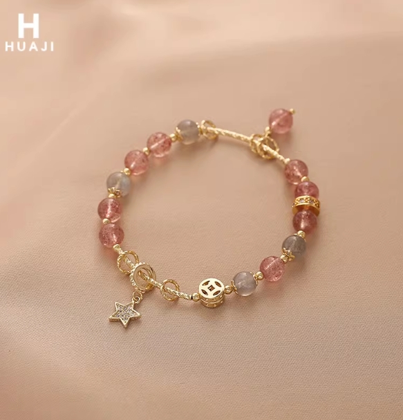 花迹草莓晶灰月光石手链女小众设计感手镯闺蜜生日礼物