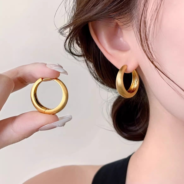 法式复古哑光拉丝素圈耳环女纯银小众高级感耳圈
