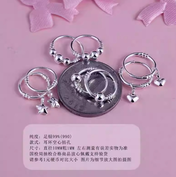 999纯银耳环耳钉女 足银养耳洞防堵睡觉不用摘耳饰品耳骨环耳圈扣