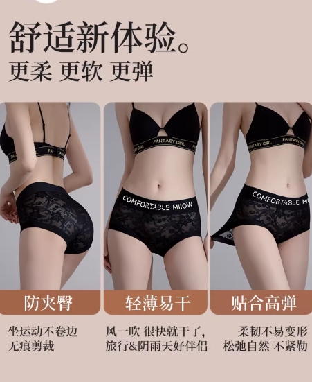 猫人性感蕾丝内裤女生2025新款桑蚕丝抑菌裆冰丝无痕女士三角短裤