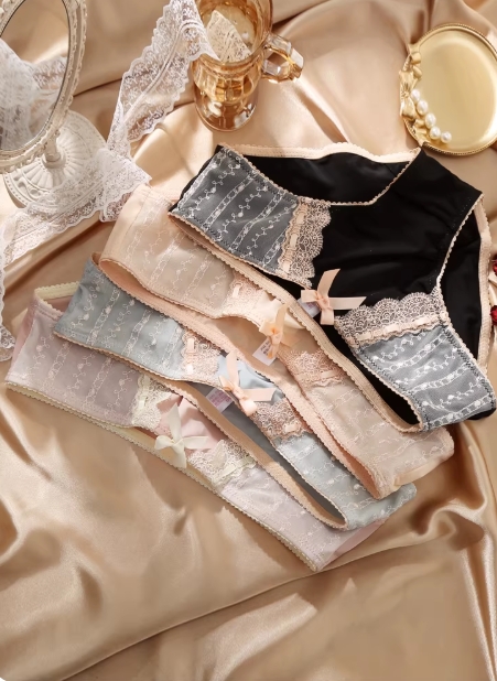 丝滑牛奶丝性感蕾丝内裤 女士冰丝无痕低腰纯棉档三角裤 女夏薄款