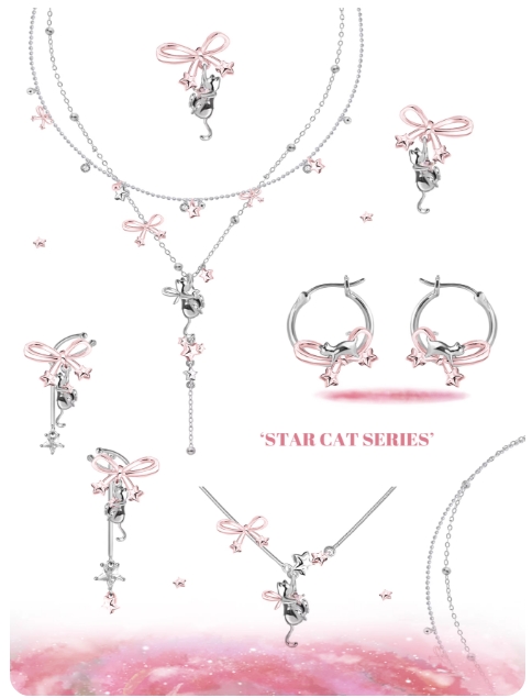 MASW麻秀原创设计可爱甜美精致蝴蝶与猫猫耳钉小众高级感粉色耳饰