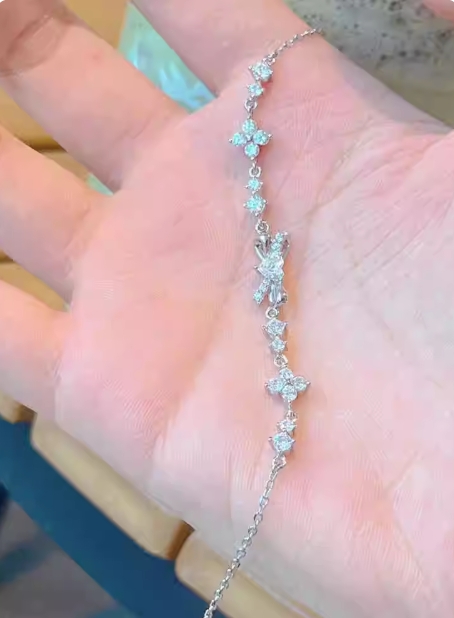 S999纯银手链女生蝴蝶结轻奢小众高级百搭闺蜜女友生日情人节礼物