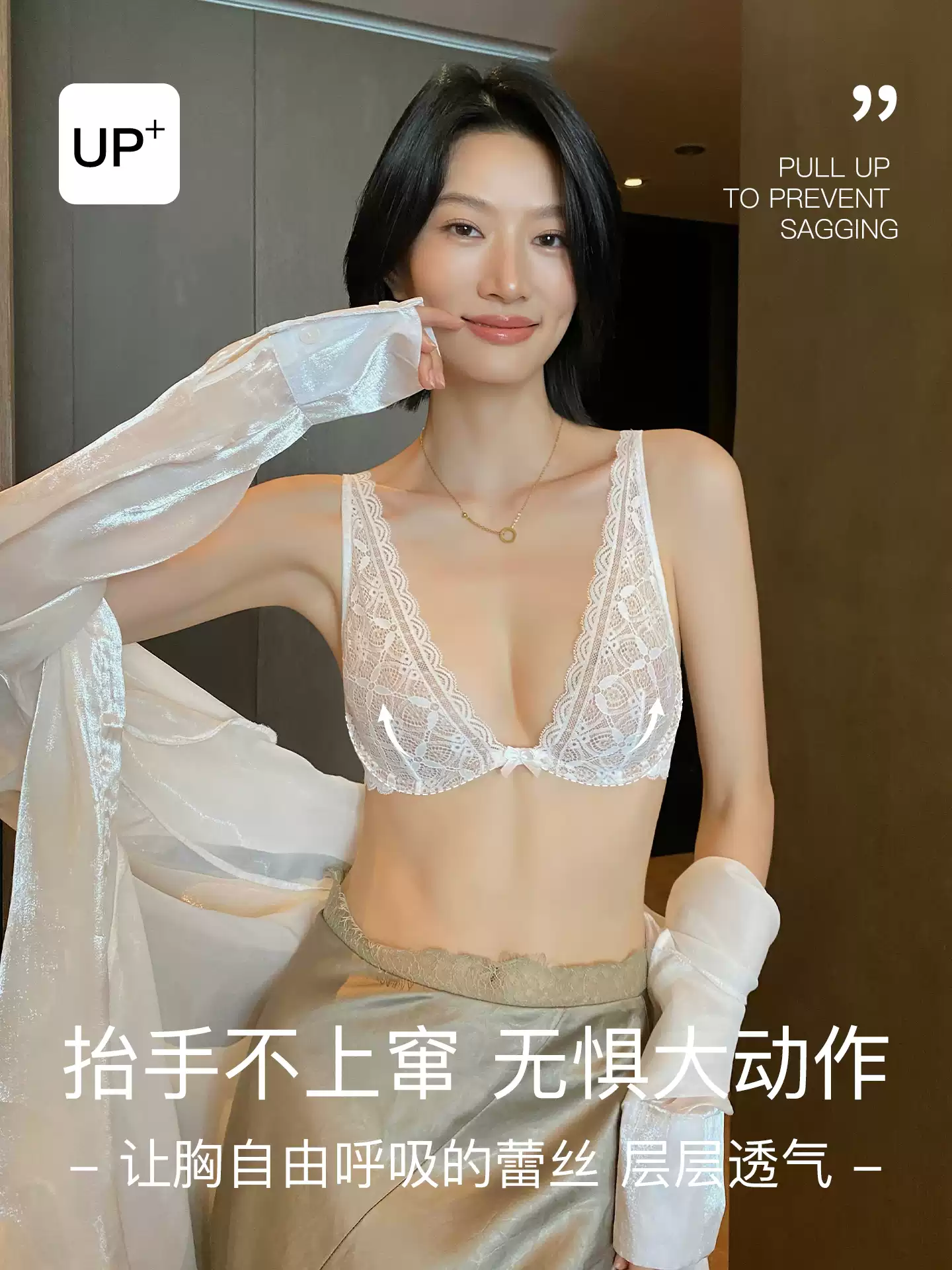 蕾丝内衣套装女夏薄款小胸性感深v防下垂法式文胸罩2025新款爆款