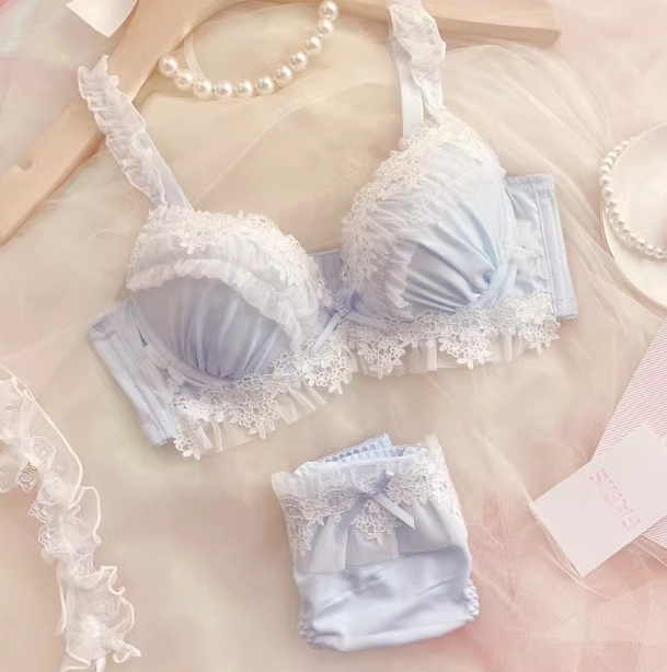 日系甜美大钢圈文胸套装 纯欲风大罩杯G杯少女内衣重工蕾丝薄杯
