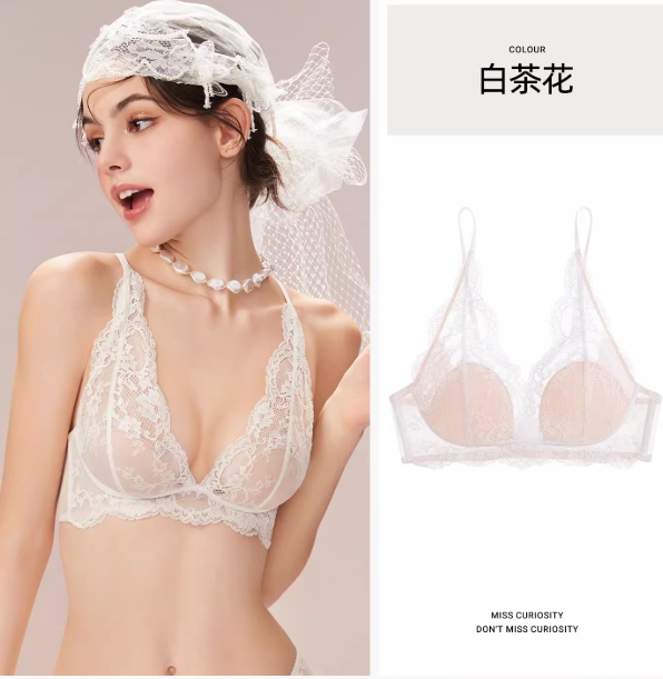 好奇蜜斯蕾丝法式内衣女美背性感夏薄纯欲文胸罩套装白三角杯小胸