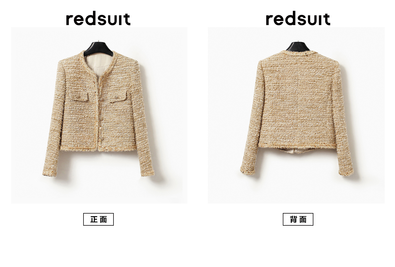 redsuit 名媛风奢华亮丝肌理感编织香槟金粗花呢小香风短外套上衣