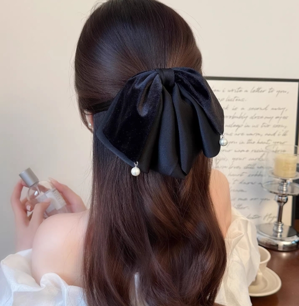 韩系复古丝绒蝴蝶结发夹新年红氛围感气质抓夹后脑勺盘发发夹发饰