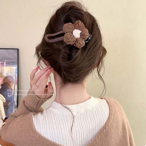 秋冬花朵鸭嘴夹发夹女2025新款高级感头发抓夹后脑勺一字夹子头饰