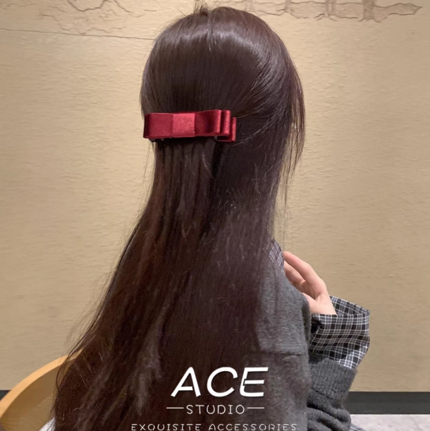 韩国高级感饰品丝绒蝴蝶结香蕉夹发夹女简约百搭气质一字型夹发饰