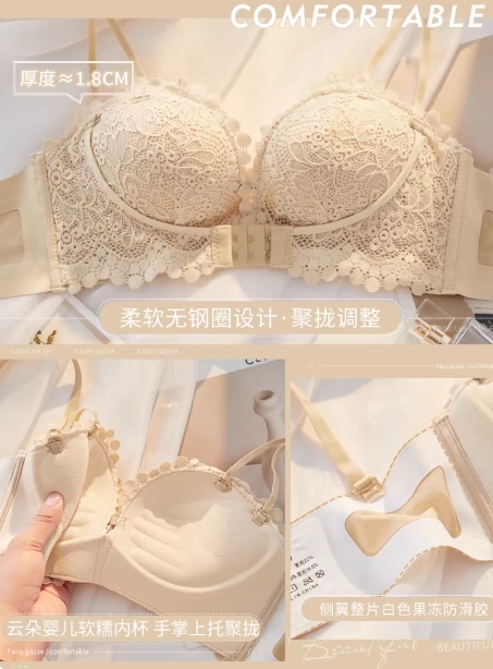 聚拢内衣女小胸显大收副乳防下垂品牌专柜正品蕾丝文胸内裤一套装