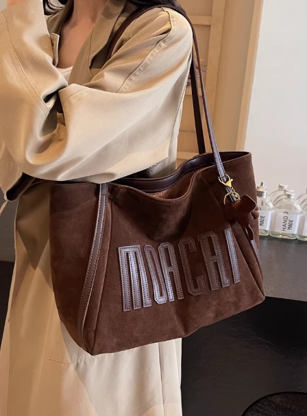 美拉德复古麂皮绒包包女秋冬时尚高级感托特包大容量通勤单肩大包