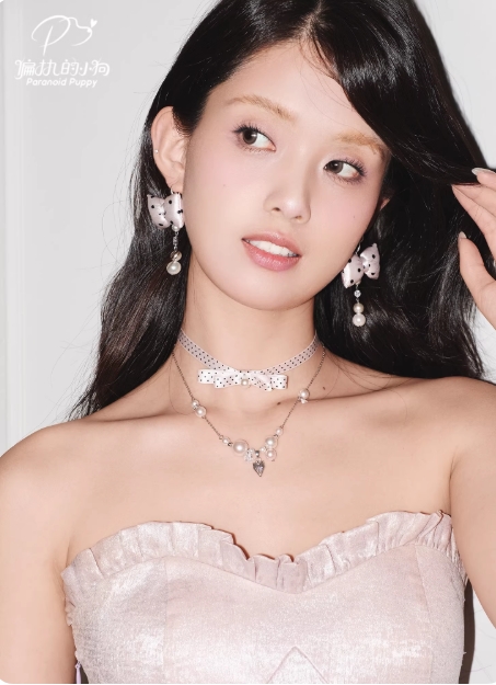 波点控miu系!原创小众绸缎蝴蝶结少女珍珠项链双层毛衣链