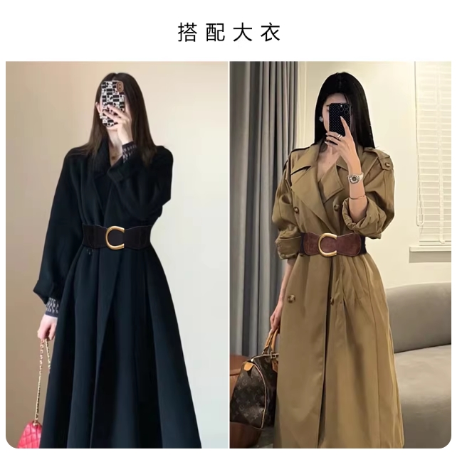高级感腰封宽腰带女粗装饰配裙子毛衣大衣羽绒服复古棕色咖色皮带