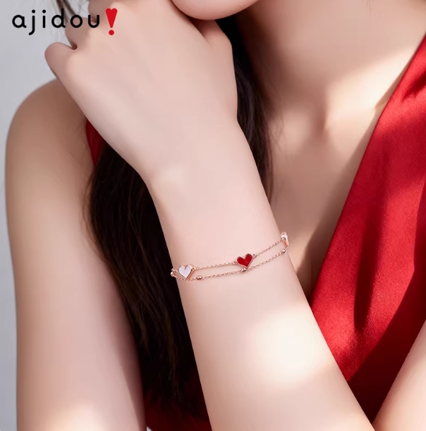AJIDOU阿吉豆爱心手链女款贝壳手串珠轻奢精致玫瑰金生日礼物手饰